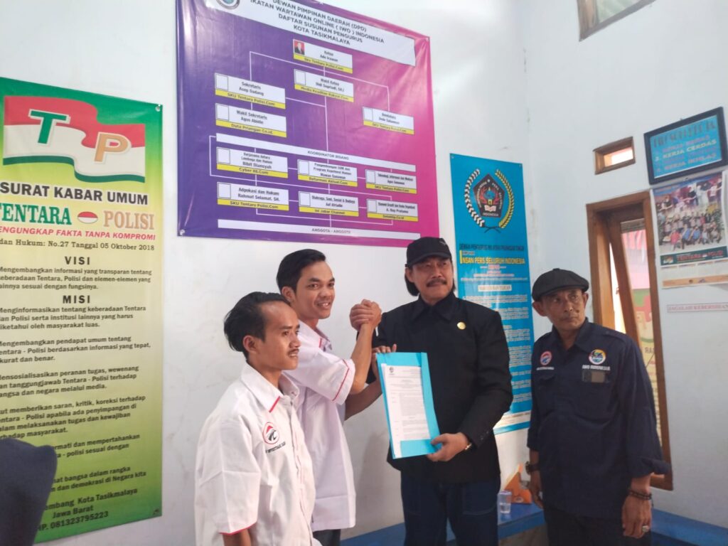 Penyerahan surat mandat itu berlangsung di Sekretariat IWO Indonesia Kota Tasikmalaya kepada pemengang mandat,Ade Irawan, untuk Kota Tasikmalaya dan Nauval Supratman, untuk Kabupaten Tasikmalaya.