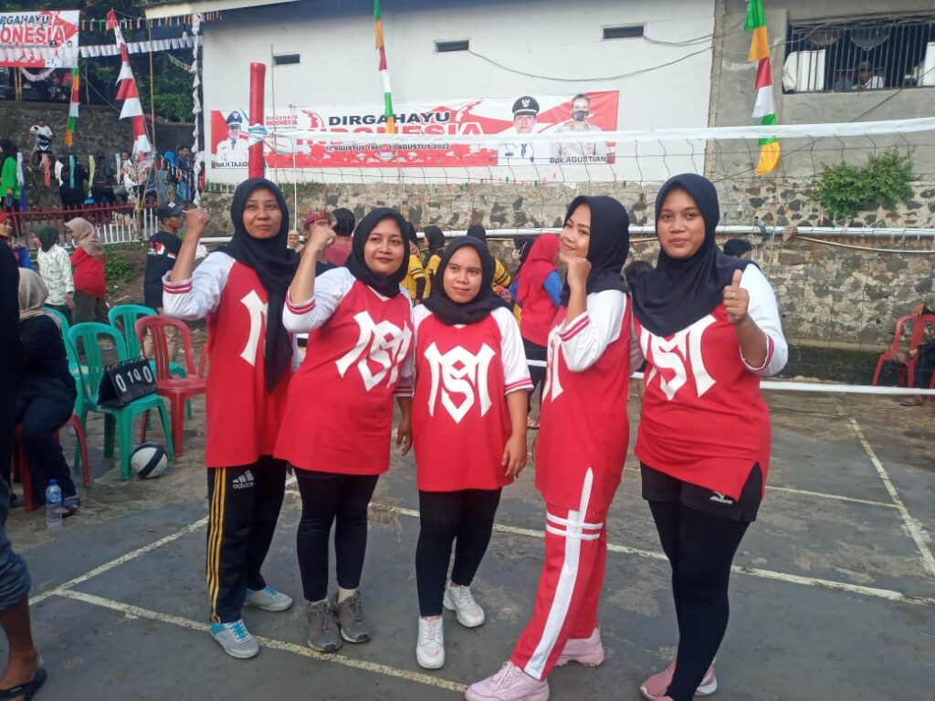 Dalam rangka ikut memeriahkan Jari Ulang Tahun (HUT) Kemerdekaan RI yang ke-77, Pemerintah Desa Mekarsari, Kecamatan Cinangka, Kabupaten Serang, Banten, menggelar perlombaan bola volly atom, yang diikuti earga Desa Mekarsari, pada Selasa (16/8/22 ).