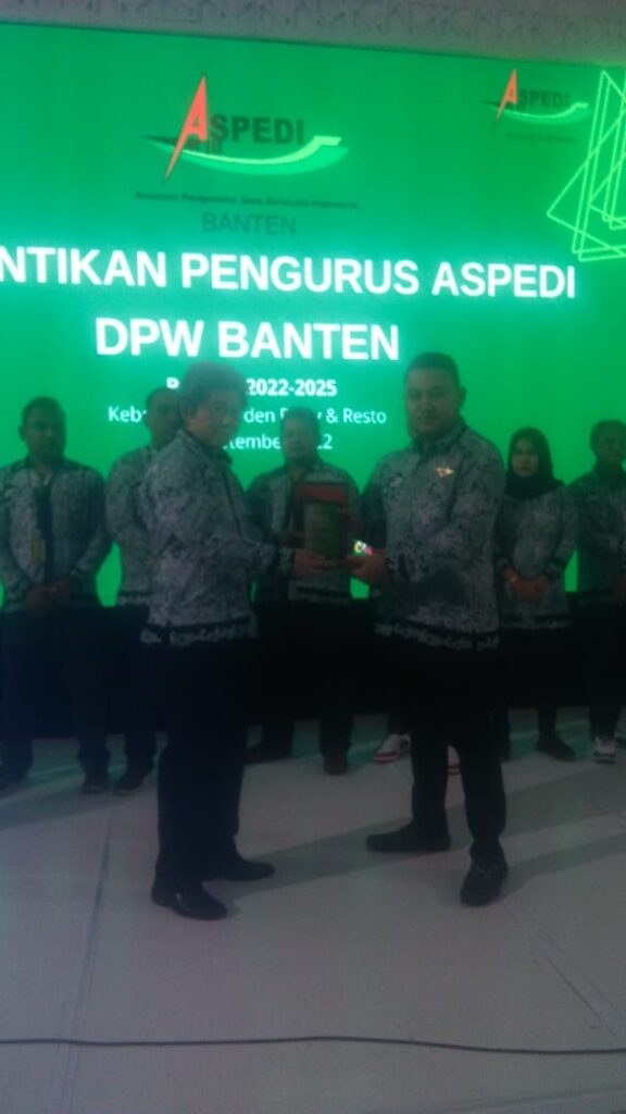 Pengurus DPP ASPEDI, H. Warsono didampingi Sekretaris Jenderal (Sekjen), Dhani Firmantara, SH, melantik Ketua DPW ASPEDI Provinsi Banten, Agung Muhammad, untuk Periode Kepengurusan Tahun 2022 /2025