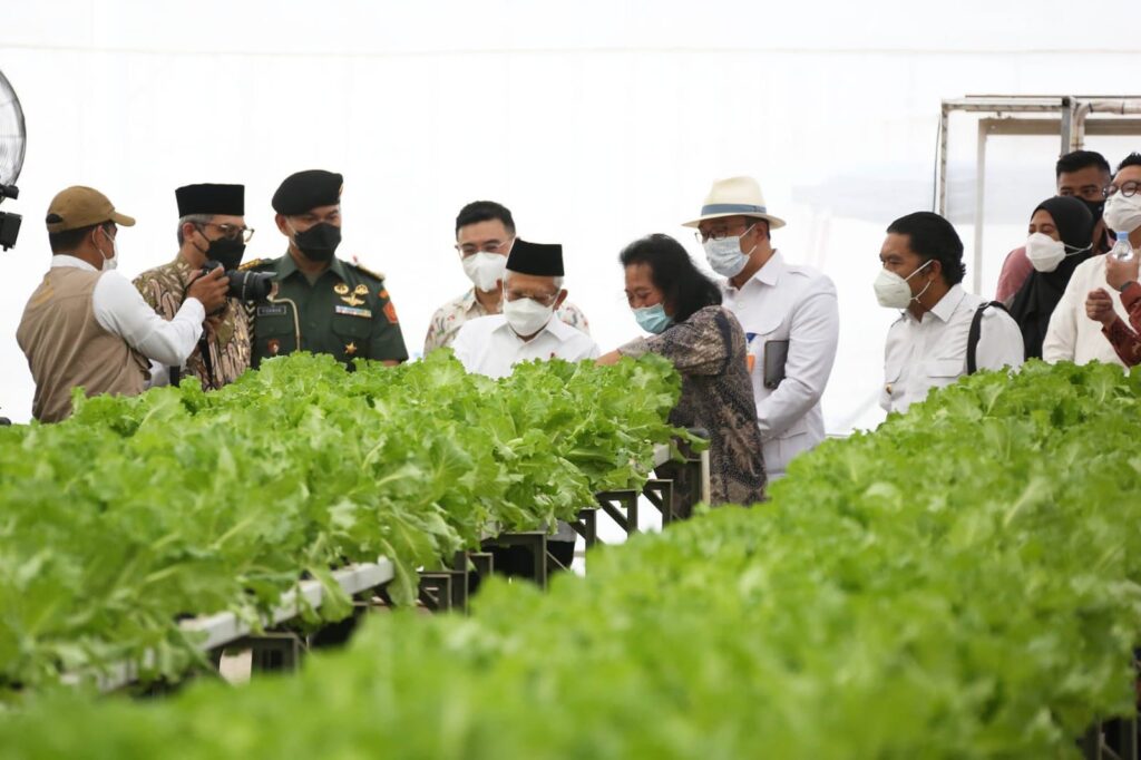 Penjabat (Pj) Gubernur Banten, Al Muktabar mendampingi Wakil Presiden Republik Indonesia KH Ma’ruf Amin meninjau PT Singapura Fresh Green Makmur Jl. Kota Bukit Indah Raya, Kamojing, Kecamatan Cikampek, Kabupaten Karawang, Kamis (15/9/2022). Kunjungan untuk mewujudkan ketahanan pangan.