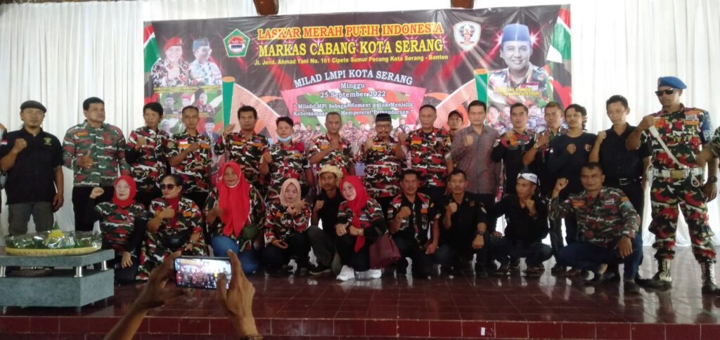 Ketua Markas Cabang Laskar Merah Putih Indonesia (LMPI) Kota Serang, Drs. Djunaedi dan Sekretaris LMPI Kota Serang, Aminudin, menyelenggarakan acara Milad LMPI Kota Serang ke-1 tahun sekaligus menggelar bhakti sosial (Baksos) pemberian santunan kepada anak yatim. Kegiattan itu bertempat di Gedung Golkar di bilangan Ciceri, Kota Serang, pada Minggu (25/9/2022).
