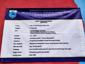 Rehabilitasi sedang/berat, sarana prasarana dan utilitas sekolah berat gedung SMPN 1 Pulosari di Desa Pulosari, Kecamatan Pulosari. Kabupaten Pandeglang, Banten, diduga kuat dalam pengerjaannya tidak sesuai spesifikasi (Spek).