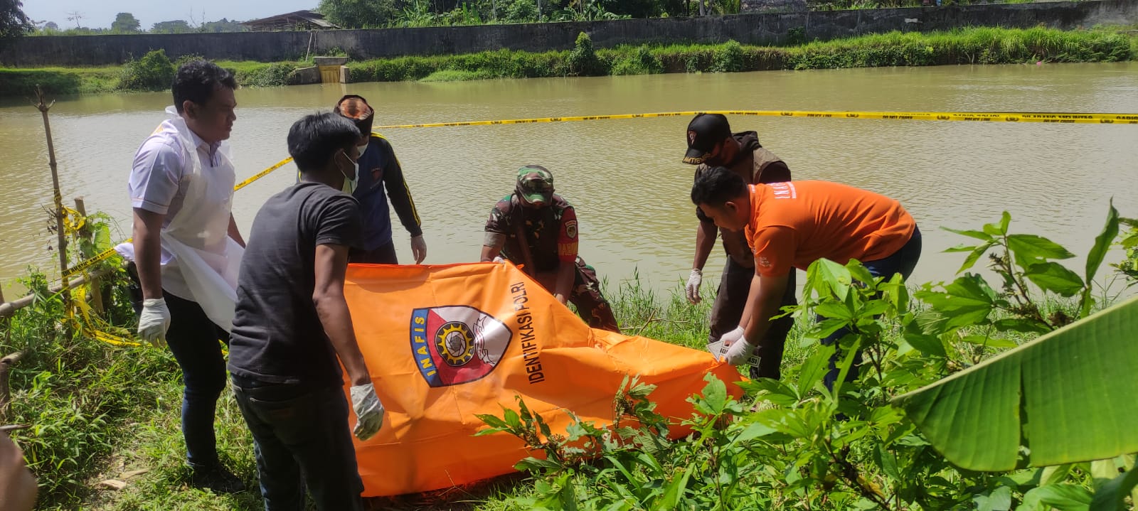 Mayat yang terapung do tepi sungai mengenakan baju kaos lengan pendek, celana jeans panjang warna biru dan memakai sepatu. Saat dilakukan pemeriksaan awal oleh anggota Koramil dan Polsek Pagelaran, ditemukan dompet yang berisi kartu Identitas 2 buah KTP, 1 buah SIM dan 1 buah kartu vaksin.