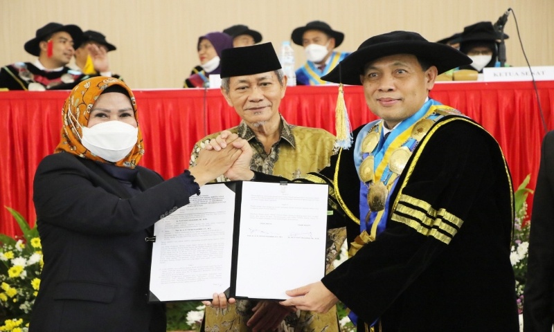 Penandatanganan disaksikan oleh Kepala LLDIKTI IV wilayah Jawa Barat dan Banten Kementerian Pendidikan dan Kebudayaan, M. Samsuri.