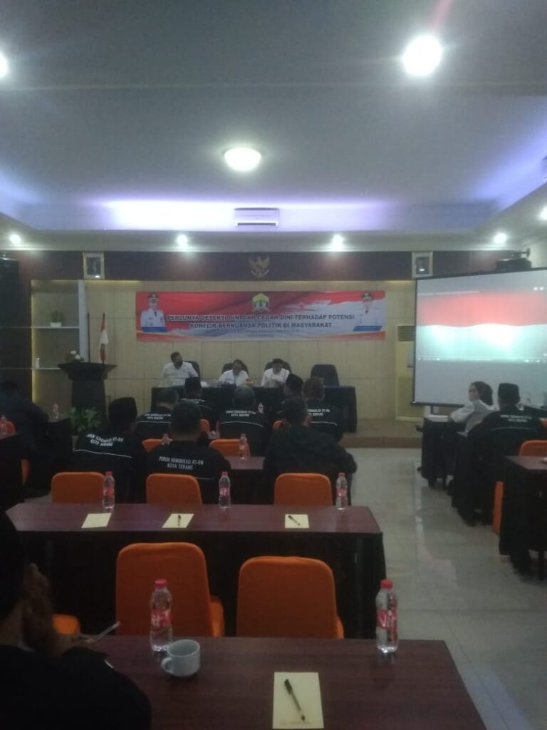 Kepala Badan Kesatuan Bangsa dan Politik Kota Serang, Drs Ahmad Ban bela dan dihadiri Kabid Kewaspadaan dini nasioanal inteljen, Dedi Supriyadi SE dan nara sumber dari Badan Inteljen Daerah (Binda) Banten,vRudi.