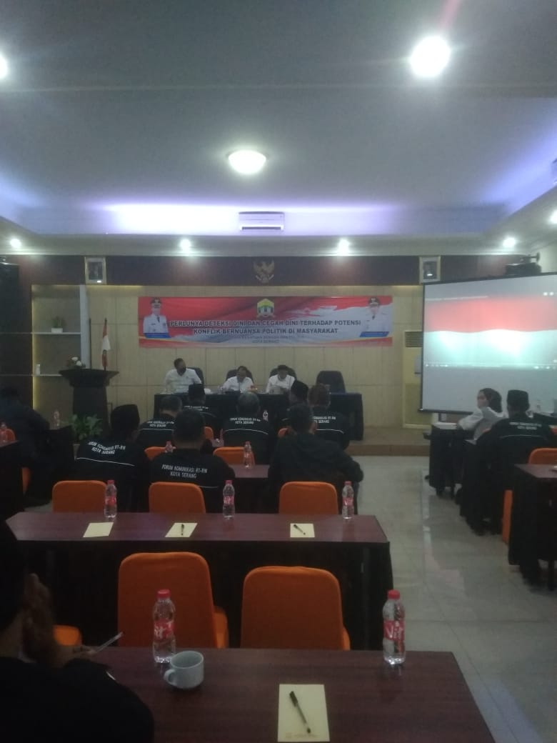 Badan Kesbangpol Kota Serang, mengadakan kegiatan deteksi dini dan cegah dini terhadap potensi konflik bernuansa politik di masyarakat. Acara berlokasi di Hotel Wisata Baru, Kecamatan Serang, Kota Serang, Banten pada Selasa (5/10/2022).