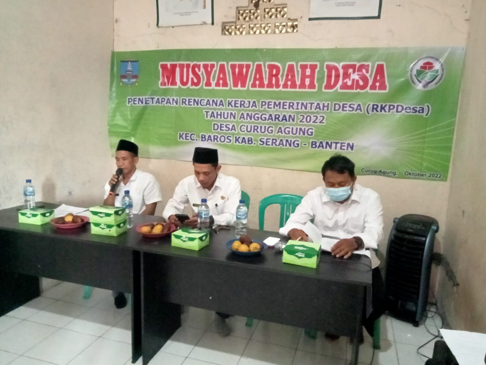 Pemerintah Desa Curug Agung, Kecamatan Baros, Kabupaten Serang, menggelar Musyawarah Desa (Musdes)  tahun anggaran 2022. Bertempat di Aula Desa Curug Agung, pada Rabu (12/10).