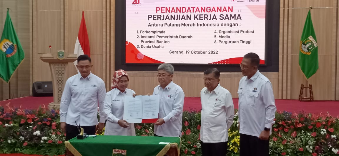 Acara pelantikan Dewan Kehormatan dan Pengurus Palang Merah Indonesia (PMI) Provinsi Banten, dilakukan pada Rabu (19/10 2022), bertempat di Pendopo Gubernur Provinsi Banten, KP3B, Curug, Kota Serang.