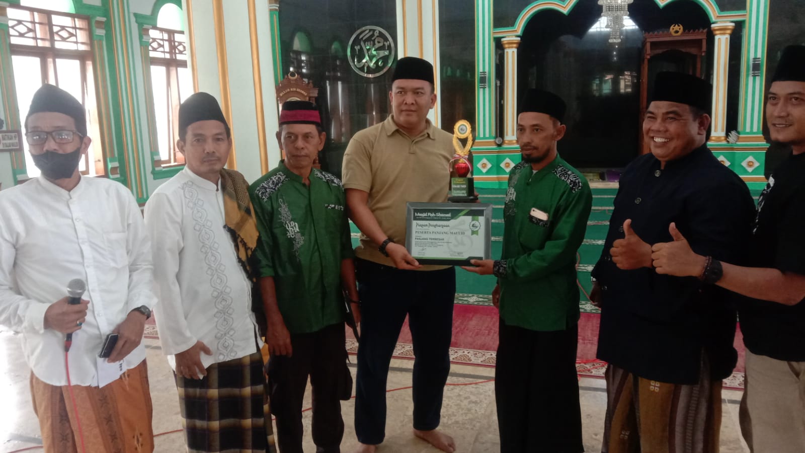 Seperti tampak seluruh panitia photo bersama dengan warga setempat.yang termasuk dan dinyatakan paling terunik di antara ratusan panjang tersebut. Jadi intinya panitia memberikan sebuah kenang-kenangan berupa piagam atau penghargaan.