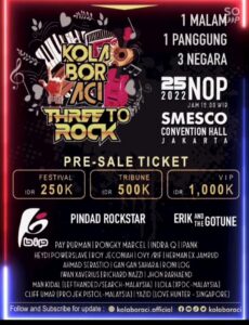 Sementara itu, untuk harga ticket konser rock satu panggung itu antara lain, untuk festival dibandrol dengan harga 250K, untuk Tribune sebesar 500K dan VIP sebesar 1.000K. Untuk keterangan pembelian ticketnya bisa melalui : www.kolaboraci.online – http://www.kolaboraci.online.