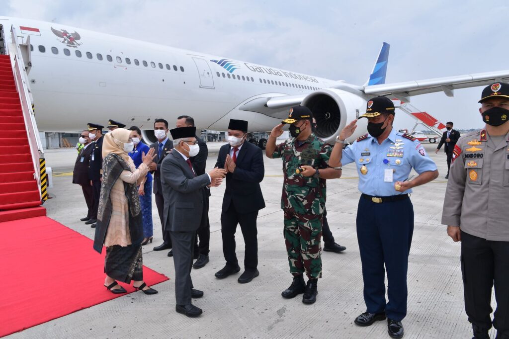 Wapres dan rombongan mendarat di Bandara Internasional Soekarno-Hatta sekitar pukul 11.45 WIB, usai menempuh penerbangan kurang lebih 11 jam dari Bandara Internasional Sharm El Sheikh Mesir.