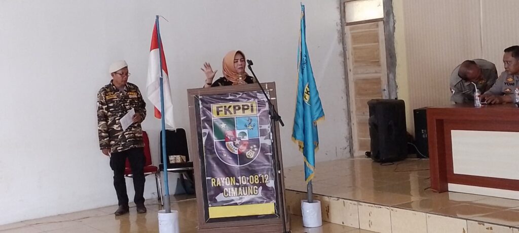 Kehadiran anggota DPRD Kabupaten Bandung, Hj. Eti Mulyati, itu dalam rangka kegiatan pelaksanaan pelantikan dan pengukuhan Pengurus Rayon 10.08.12 FKPPI Kecamatan Cimaung, yang di gelar di halaman Kantor Desa Jagabaya, pada Sabtu 12/11/2022).