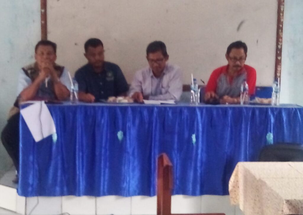 Sosialisasi pengadaan buku pelajaran dan administrasi tingkat SMPN se-Kabupaten Pandeglang, Banten, yang di gelar di Gedung SMPN Cipeucang 1 dihadiri Ketua MKKS, Drs. MN. Taupik M. M.Pd, Ketua Rayon, para kepala sekolah dan delapan distributor penyedia jasa buku, pada Selasa (15/11/2022).