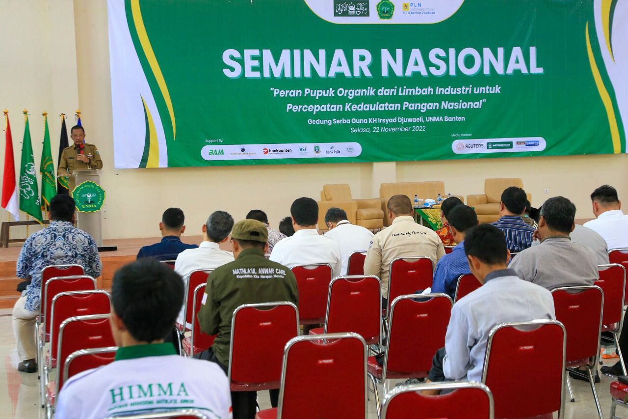 Hal itu dikatakan Penjabat (Pj) Gubernur Banten, Al Muktabar dalam sambutannya yang dibacakan Penjabat (Pj) Sekretaris Daerah Provinsi Banten, M. Tranggono, ketika memberikan sambutan dalam Seminar Peran Pupuk Organik Dari Limbah Industri Untuk Percepatan Kedaulatan Pangan Nasional di Gedung Serba Guna KH. Irsyad Djuwaeli, Universitas Matlaul Anwar Banten, Desa Sindanghayu, Kecamatan Saketi, Kabupaten Pandeglang, pada Selasa (22/11/2022).