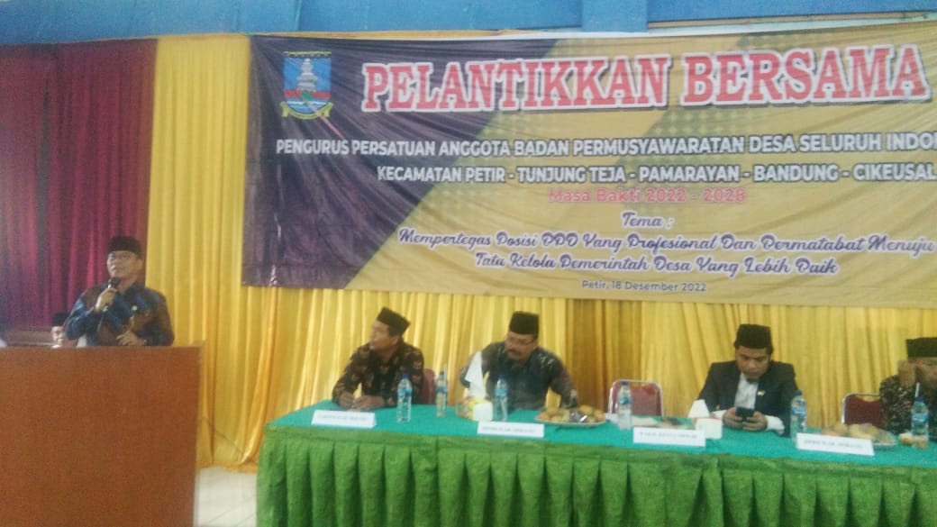 Pelantikan bersama Pengurus Persatuan Anggota Badan Permusyawaratan Desa Seluruh Indonesia (PABPDSI). Acara digelar di Aula KPRI Teguh, Kecamatan Petir, Kabupaten Serang, Banten, pada Mingggu (18/12/22).