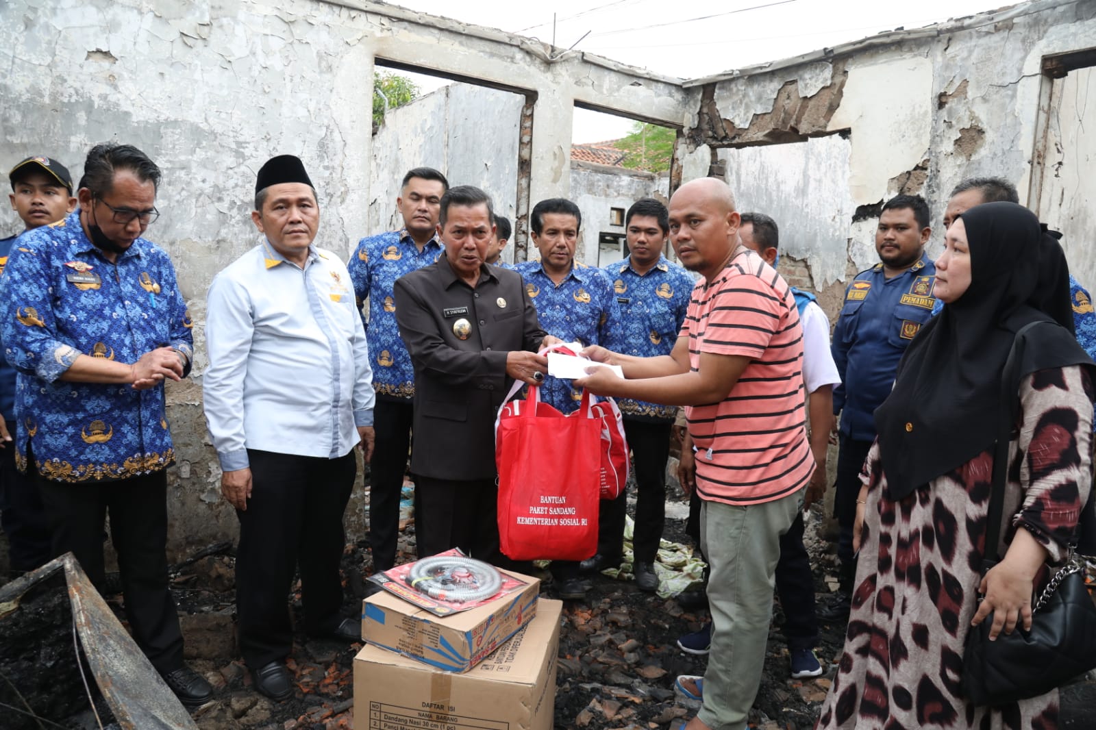Walikota Serang, Syafrudin, didampingi Kepala Dinas Perumahan dan Kawasan Permukiman (DPKP) Kota Serang, Novriadi, Kepala Satuan Pol PP Heri Hadi, serta Camat Serang, Mashudi, mengunjungi salah satu warga yang rumahnya dilalap sijago merah, pada Senin (19/12).