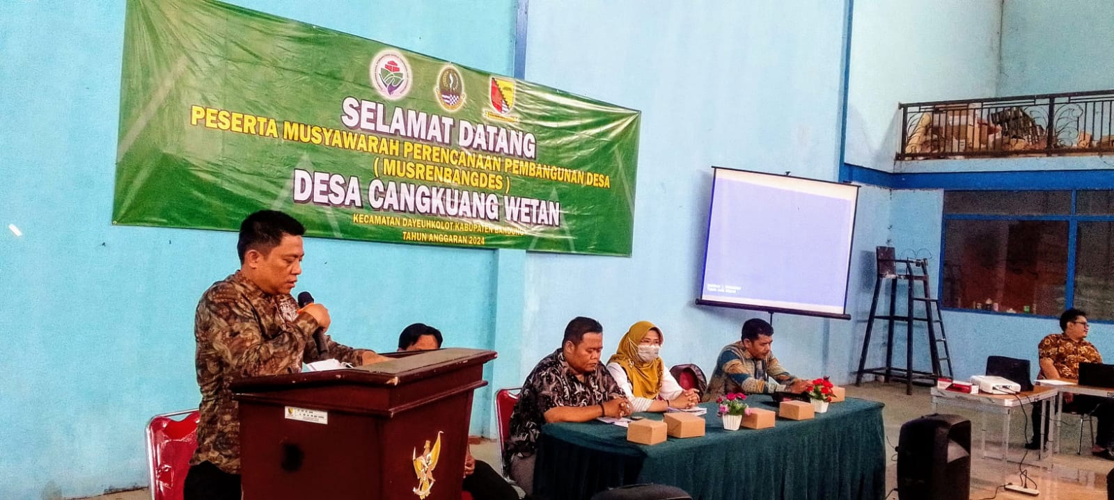Pemerintah Desa (Pemdes) Cangkuang Wetan, Kecamatan Dayeuhkolot, Kabupaten Bandung, Jawa Barat, melaksanakan kegiatan Musyawarah Perencanaan pembangunan Desa (Musrenbangdes) tingkat Desa Cangkuang Wetan. Kegiatan itu bertempat di Aula setempat, pada Kamis (5/01/2023).