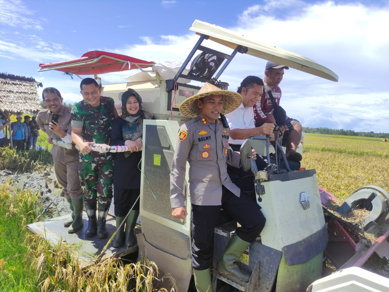 Komandan Kodim 0601/ Pandeglang, Letkol Inf. Jani Setiadi, bersama Forkopimda menghadiri kegiatan panen raya padi bertempat di Desa Margagiri, Kecamatan Pagelaran, Kabupaten Pandeglang, pada Selasa (10/01/23).
