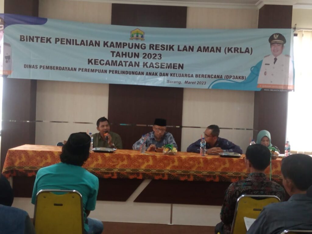Pemerinta Kecamatah Kasemen, Kota Setang, menggelar kegiatan Bimbingan Teknis (Bintek) Penilaian Kampung Resik Lan aman (Karla) tahun 2023. Kegiatan itu bertempat di Aula Kantor Kecamatan Kasemen, pada Kamis (2/3/2023)
