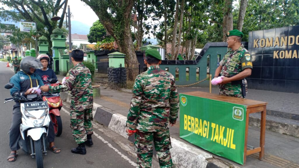 Pembagian takjil dipimpin oleh Pasi Pers Kodim 0601/Pandeglang, Kapten Inf. Aries Syafarudin. Takjil tersebut dibagikan kepada pengendara sepeda motor dan kendaraan roda empat serta masyarakat pejalan kaki yang melintas di depan Makodim 0601/Pandeglang.