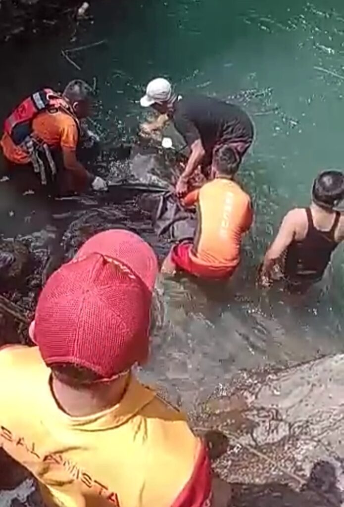 Jasad korban Suhendi Hilman (25), warga Kampung Jami RT 02/RW 07, Kelurahan Kalodran, Kecamatan Walantaka, Kota Serang, yang tenggelam di obyek wisata Alam Curug Leuwi Putih di Kqmpung Jaha, Desa Cinoyong, Kecamatan Carita, Kabupaten Pandeglang, pada Selasa (25/4/2023), setelah di lakukan pencarian oleh Tim Gabungan Balawista Kabupaten Serang dan Kabupaten Pandeglang dengan dibantu warga, akhirnya ditemukan di sekitar Curug Leuwi Putih dalam keadaan tewas, padq Rabu (26/4/2023).
