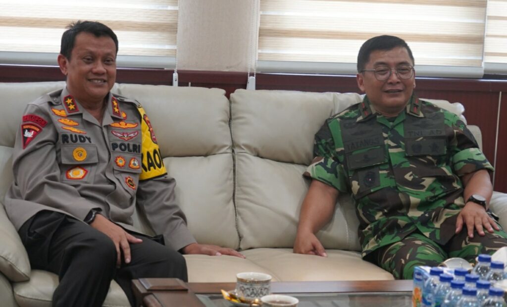 Komandan Korem (Danrem) 064/Maulana Yusuf, Brigjen TNI Tatang Subarna melakukan kunjungan dalam rangka halal bihalal ke Markas Kepolisian Daerah (Mapolda) Banten, Kamis (27/4/2023).