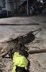 “Setelah Magrib, kami bersiap-siap untuk menangkap buaya muara dengan peralatan seadanya,” kata Alex, seraya menambahan tetapi bukan saat ini saja, malam sebelumnya warga terus mengawasi keberadaan buaya muara tersebut “Namun, baru malam ini buaya liar itu tertangkap,” ujarnya.