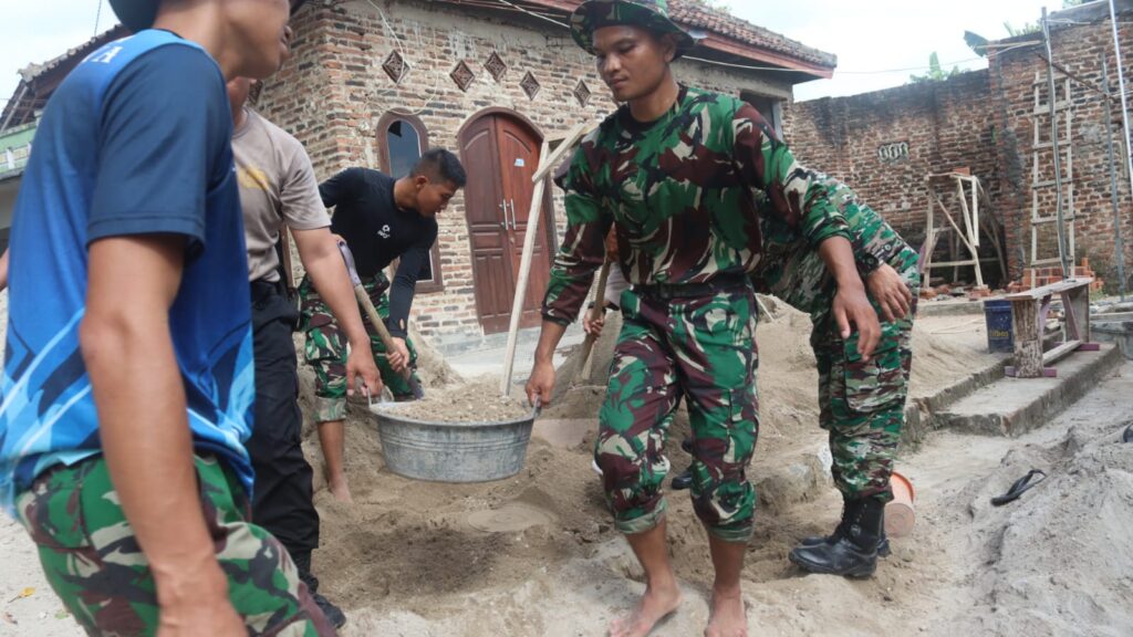 Satgas TMMD ke-116 Kodim 0623/Cilegon mulai mengerjakan jambanisasi dan rehab Mushala pada H+2 pembukaan TMMD.