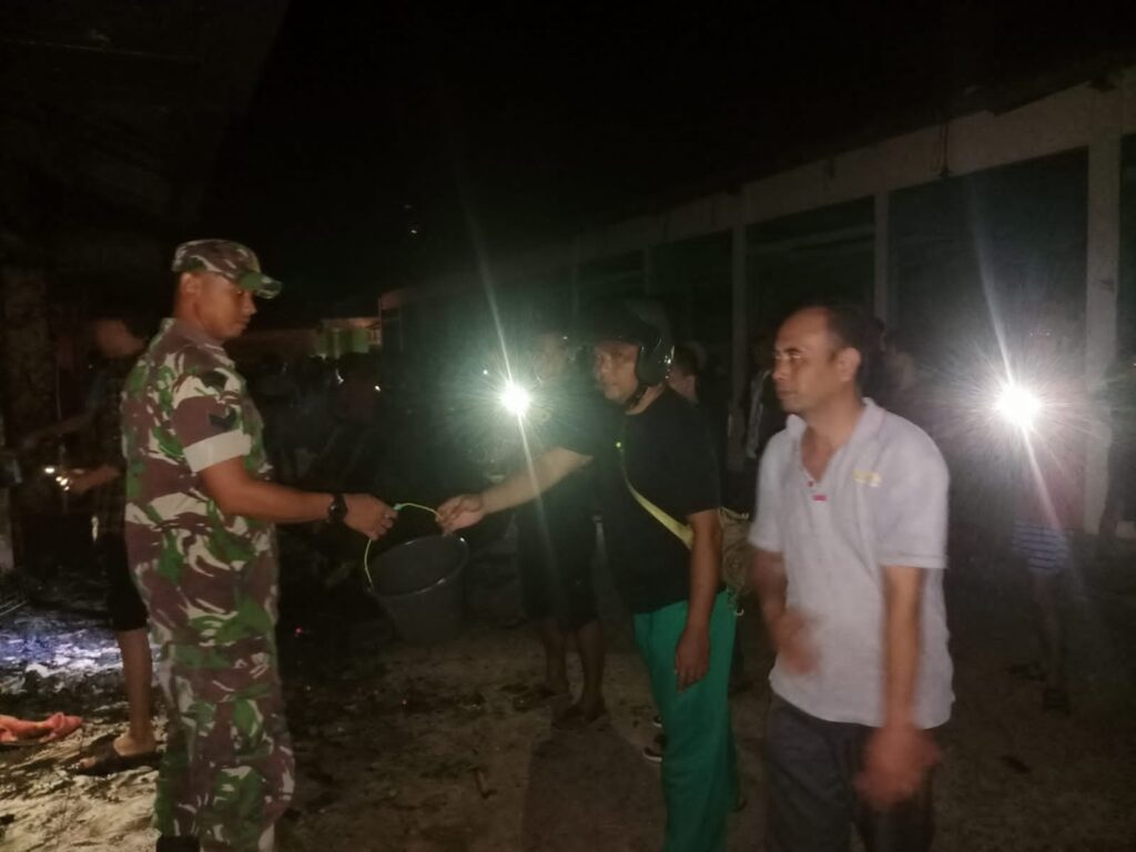 Babinsa Koramil 0109/Munjul, Sertu Sutaryat, mendapatkan informasi dari masyarakat adanya kasus kebakaran di Pasar Baru Munjul, Kampung Ciherang, RT.07/RW. 04 Desa Pasanggrahan, Kecamatan Munjul, Kabupaten Pandeglang, Banten, pada Kamis (18/05/23).