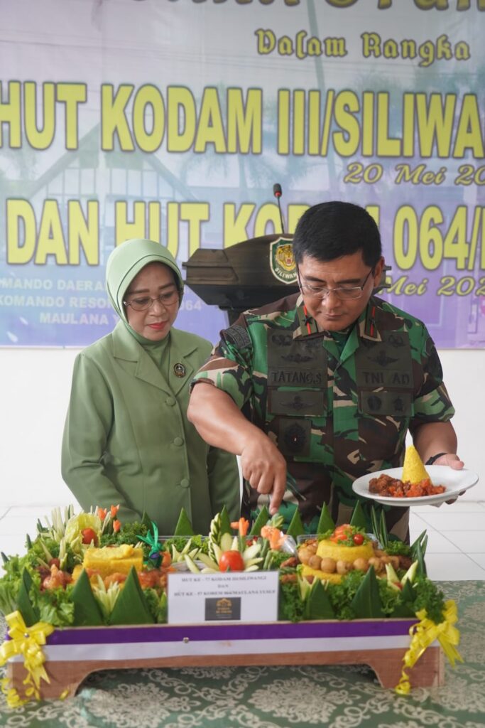Dalam rangka Hari Ulang Tahun (HUT) HUT Kodam III/Siliwangi ke-77 dan HUT Korem 064/Maulana Yusuf (MY) mengadakan syukuran di Makorem 064/MY, Jl. Maulana Yusuf No 9 Kota Serang, Banten, pada Selasa (23/Mei/2023).