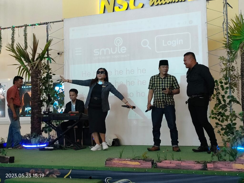 Pengacara Andika Meigista, diberikan kesempatan untuk naik ke atas panggung seraya bernyanyi membawakan lagu.