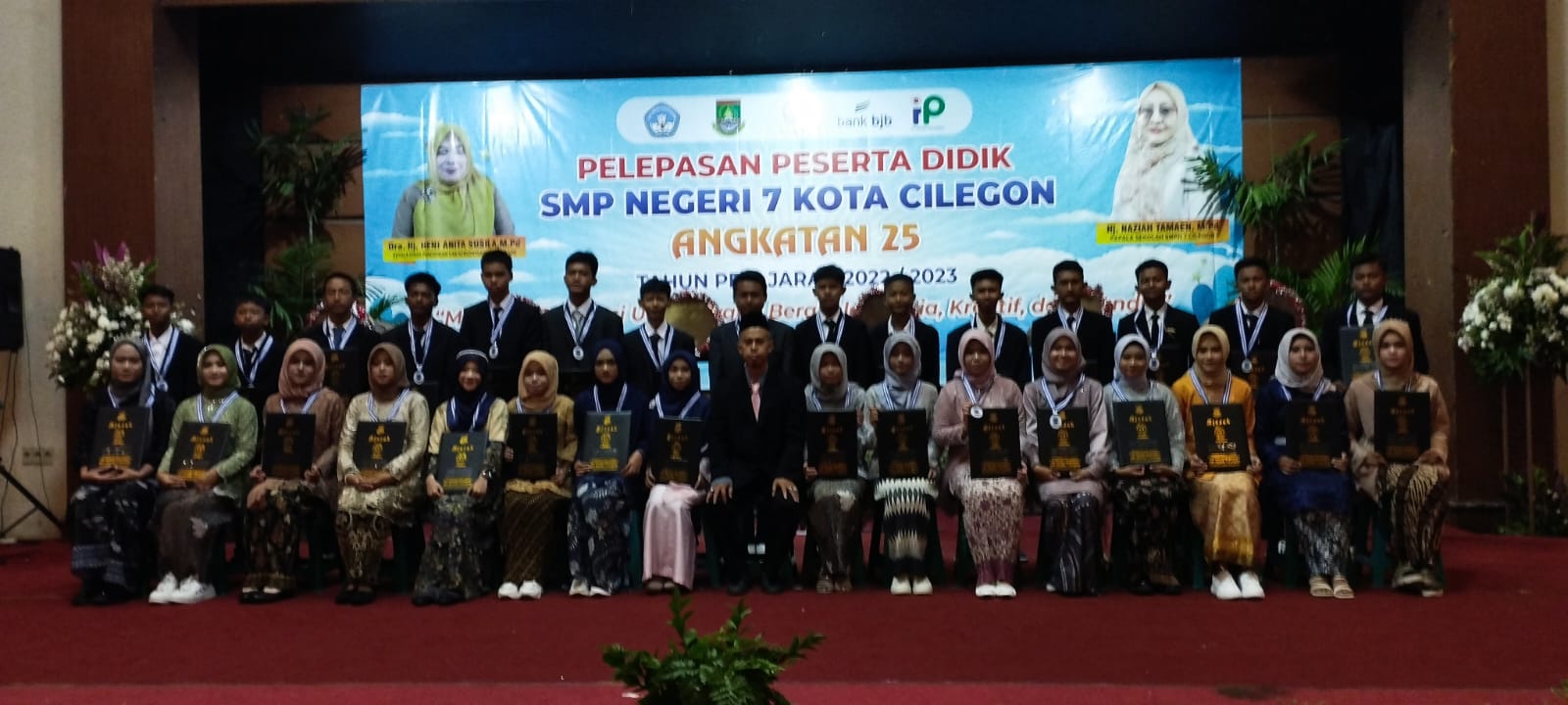 Sekolah Menegah Pertama Negeri (SMPN) 7 Kota Cilegon, mengelar kegiatan pelepasan siswa siswi kelas 9, yang bertempat di Aula Joglo Sari Kuring inxah, Kota Cilegon, pada Senin (23/5/2023).