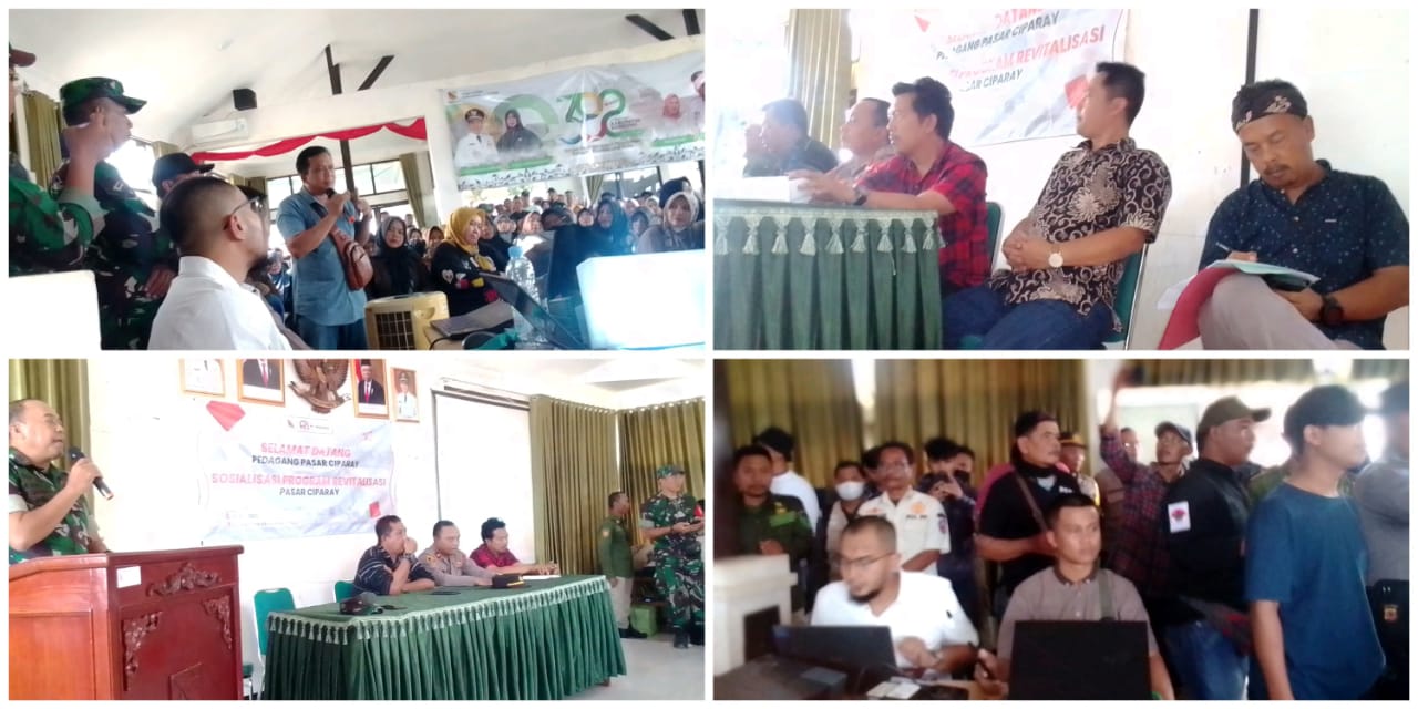 Pemerintah Desa (Pemdes)) Ciparay, Kecamatan Ciparay, Kabupaten Bandung, Jawa Barat, bersama jajaran Muspika termasuk Camat, Danramil dan Kapolsek, menampung aspirasi dan usulan terkait kegiatan sosialisasi program revitalisasi Pasar Ciparay. dan pihak pengembang PT. Pradasa.