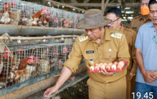 Penjabat (Pj) Gubernur Banten, Al Muktabar meninjau peternakan ayam petelur, milik PT Puri Farm di Kecamatan Curug, Kota Serang, pada Senin (5/6/2023). Memastikan penyebab fluktuasi harga telur di tingkat peternak.