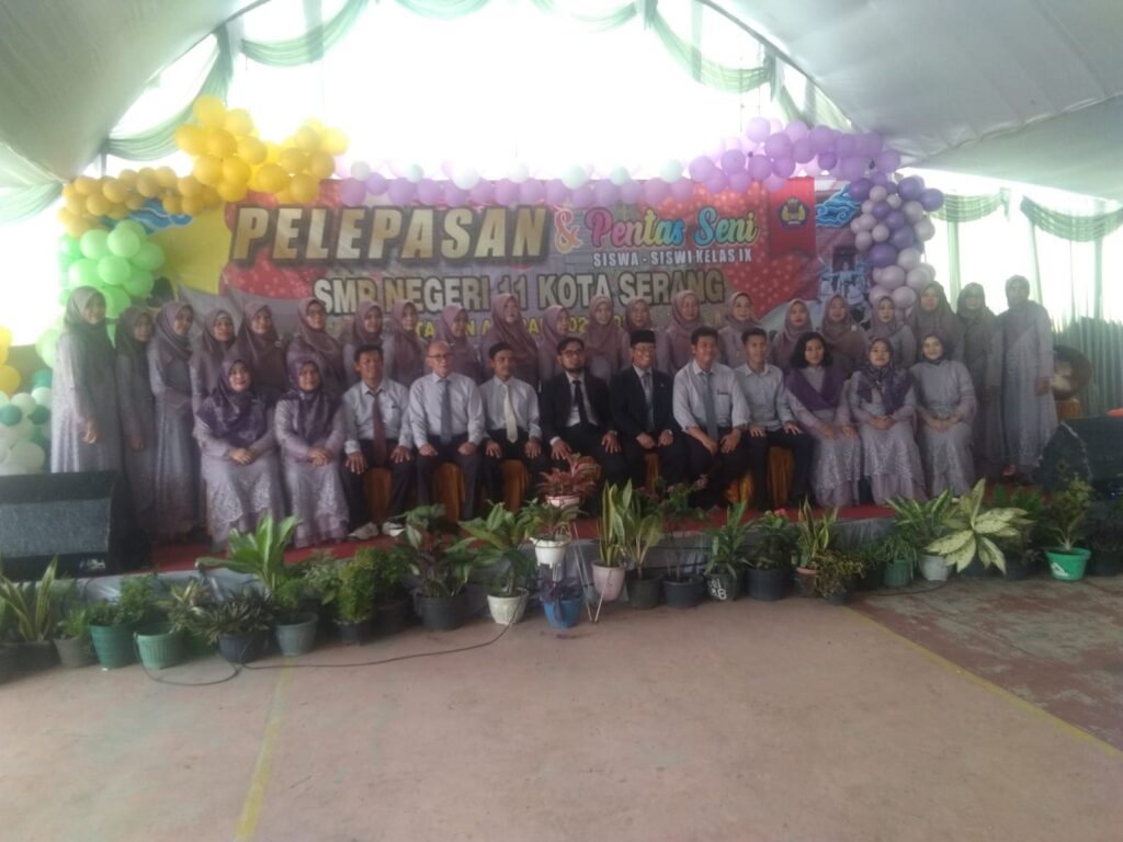 Acara pelepsan dan pentas seni siswa -siswi kelas IX, tahun ajaran 2022- 2023, SMPN 11 Kota Serang, dihadiri Kepala Dinas Pendidikan dan Kebudayaan (Dikbud) Kota Serang, H. Tb. Suherman, diwakili Pengawas SMP Dinas Dikbud Kota Serang, Ketua Komite SMPN 11 Kota Serang Agus, para wali murid kelas IX dan undangan lainnya.