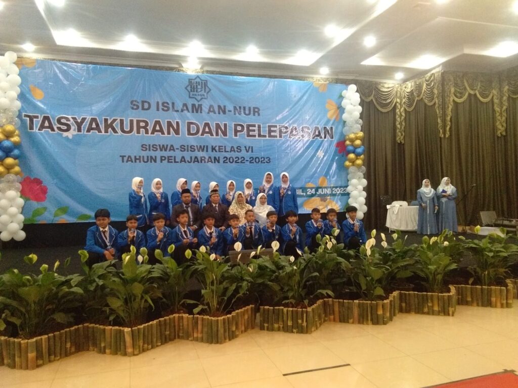 Sementara itu, Kepala SD Islam An- Nur Kota Serang, Ahmad Saifuddin, S.Pdi, menyatakan, tasyakuran dan pelepasan siswa kelas VI, dihadiri Pengawas, Pembina Sekolah, H. Sahroni, M.Pd, seluruh Dewan Guru SD Islam An -Nur dan para wali murid serta undangan lainnya,