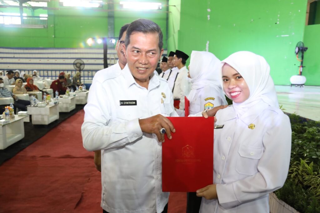 Wali Kota Serang, Syafrudin, didampingi Sekretaris Daerah Kota Serang, Nanang Saefudinx serta Kepala BKPSDM Kota Serang, Karsono, menyerahkan secara langsung Surat Keputusan Pengangkatan Pegawai P3K Formasi Tahun 2022 di lingkungan Pemerintah Kota Serang, Kegiatan penyerahan itu dilaksanakan di Gedung Gelanggang Remaja Stadion Maulana Yusuf Kota Serang, pada Rabu (05/07).