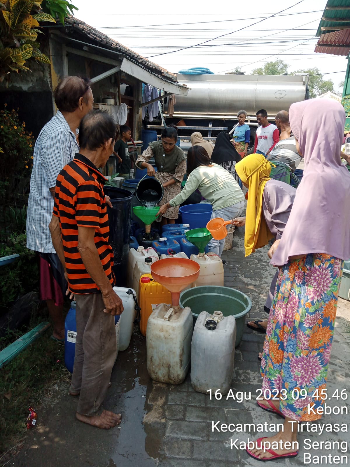 Di saat warga tengah merayakan HUT Kemerdekaan RI tang ke-78, ternyata masih ada saudara saudara kita yang berada dalam kondisi kekeringan di musim kemarau di Kampung Domas, Cerocoh, Kecamatan Pontang .dan Desa Kebon, Kecamatan Tirtayasa. Begitu antusias warga memanfaatkan pasokan air bersih dari Perumda Tirta Albantani Kabuoaten Serang secara gratis.