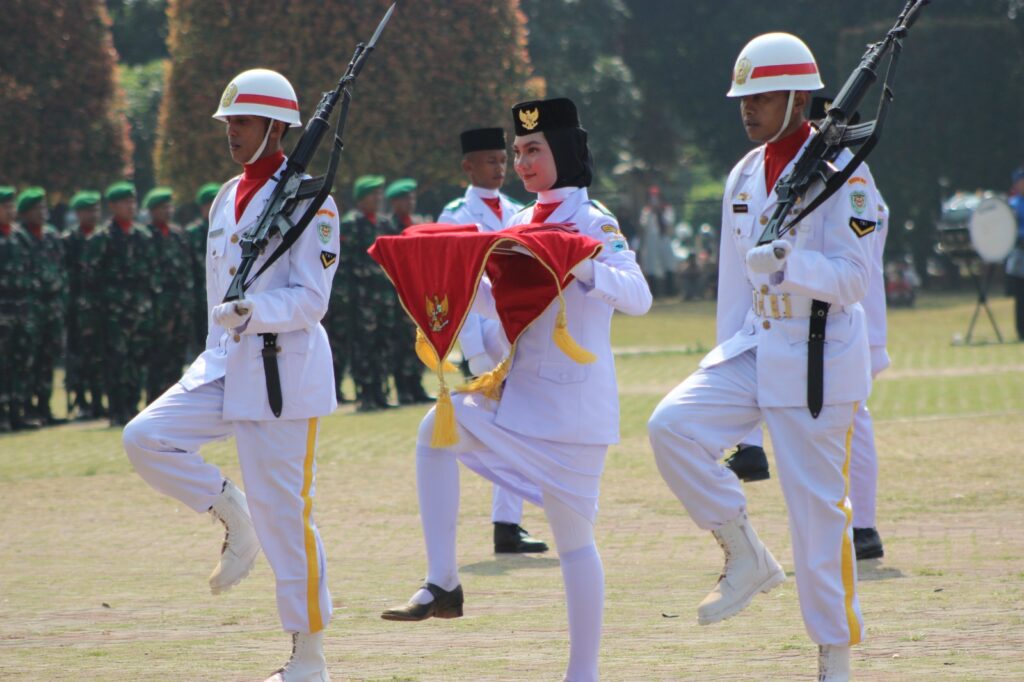 Bertindak sebagai Inspektur upacara Bupati Pandeglang Hj. Irna Narulita, S.E., M.M., Suasana khidmat terasa saat sang Bendera Merah Putih mulai dikibarkan ke ujung tiang tertinggi dengan diiringi lagu kebangsaan Indonesia Raya dan penghormatan seluruh peserta upacara yang di pimpin oleh Komadan Upacara Kapten Arh. Asep Kandana.