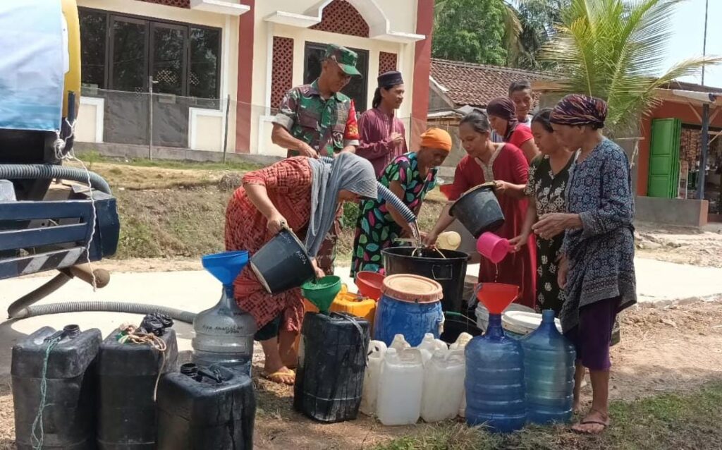 Sementara itu, Komandan Koramil (Danramil) 0111/Pagelaran, Kapten Inf. Tata ikut prihatin dengan kondisi sebagian warga yang saat ini di landa kesulitan mendapatkan air bersih.
