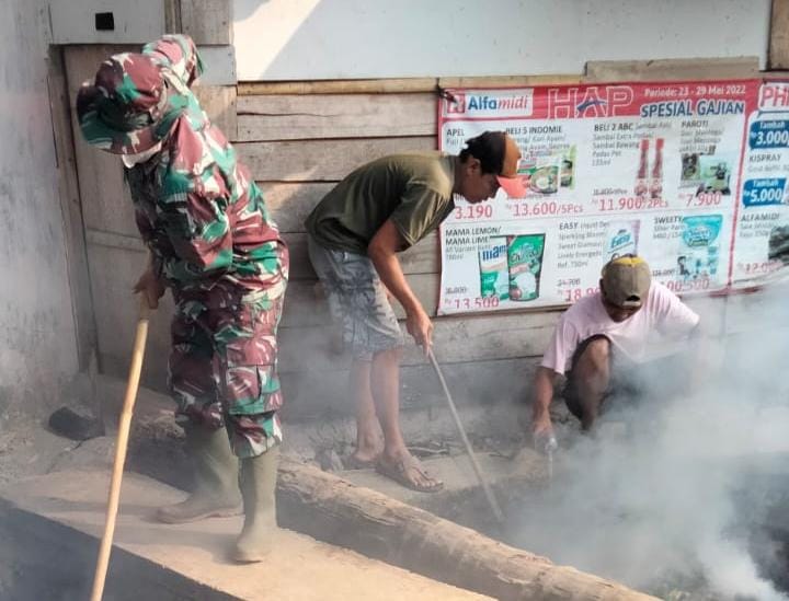 “Kami bersama warga bergotong royong bersama-sama membersihkan aliran sungai dari sampah untuk menciptakan lingkungan yang bersih dan terhindar dari munculnya wabah penyakit, “ungkap Peltu Lukman.