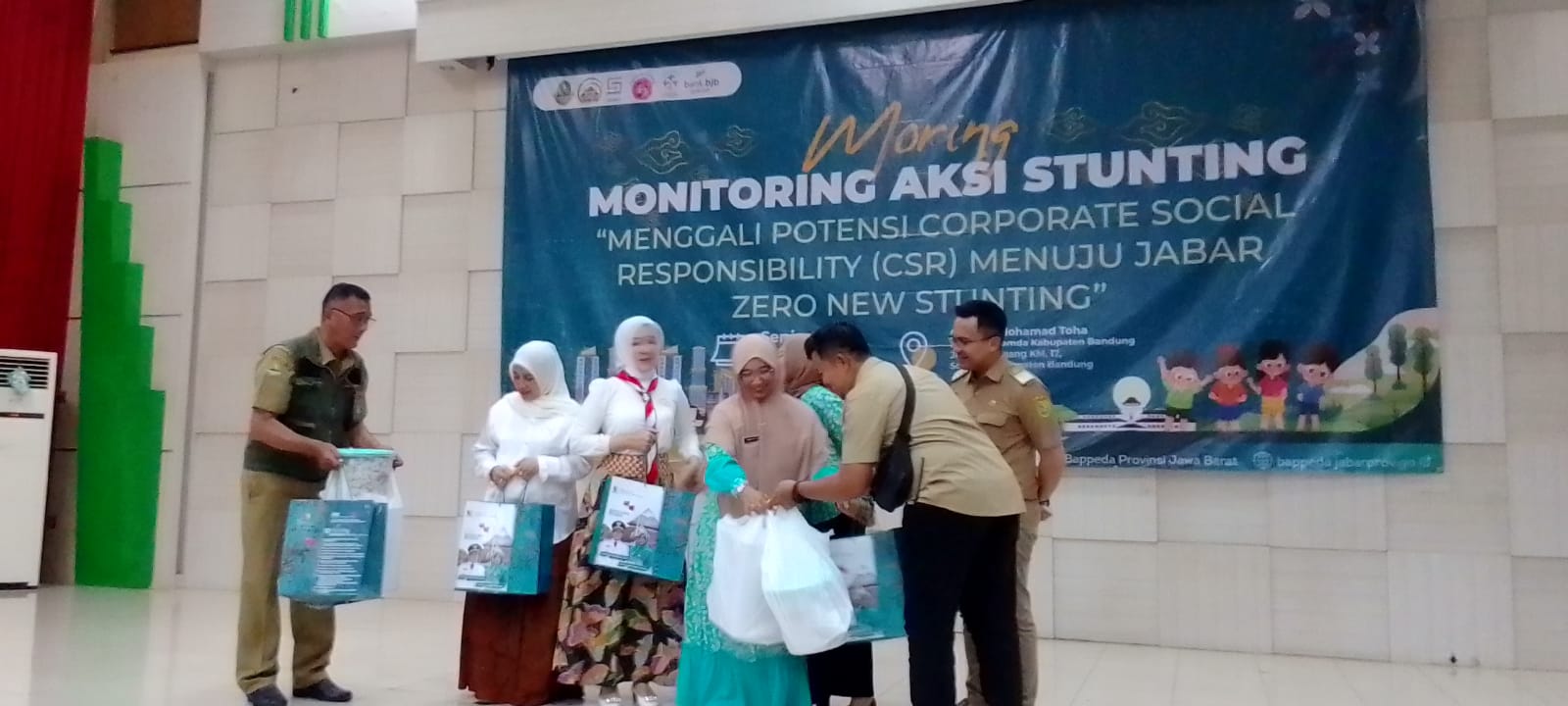 Dilaksanakan pula pemberian bantuan pangan kepada keluarga beresiko stunting dari Badan Pangan Nasional dan pemberian bantuan dari Mitra CSR Jabar BJB Syariah kepada Pemda Kabupaten Bandung. Diharapkan kegiatan ini dapat menggali potensi CSR dan memperkuat upaya percepatan menuju Jabar Zero New Stunting.