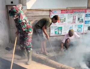 Babinsa Koramil Labuan Ajak Warga Bersihkan Sampah di Saluran Air