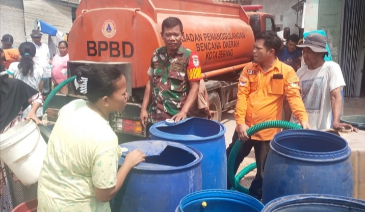 “Karena itu, Babinsa Koramil 0602-01/Kota Serang membantu BPBD Kota Serang, memberikan bantuan pasokan air bersih kepada masyarakat. Akibat terjadinya fenomena El Nino, Sehingga mengakibatkan kemarau panjang khususnya beberapa wilayah di Kota Serang,” terangnya.