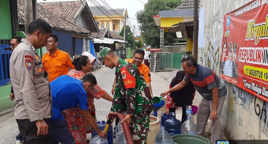 Bintara Pembina Desa (Babinsa) Koramil 0602-18/Kragilan, Kodim 0602/Serang, Sersan Satu (Sertu) Ahdi Sutisna, membantu Pemerintah Daerah Kabupaten Serang melalui Badan Penanggulangan Bencana Daerah (BPBD) menyalurkan bantuan air bersih kepada masyarakat yang terdampak kekeringan, akibat kemarau karena fenomena El Nino. Legiatan itu bertempat di Kampung Cisereh, Desa Kragilan, Kecamatan Kragilan, Kabupaten Serang, Provinsi Banten, pada Selasa(19/09/2023).