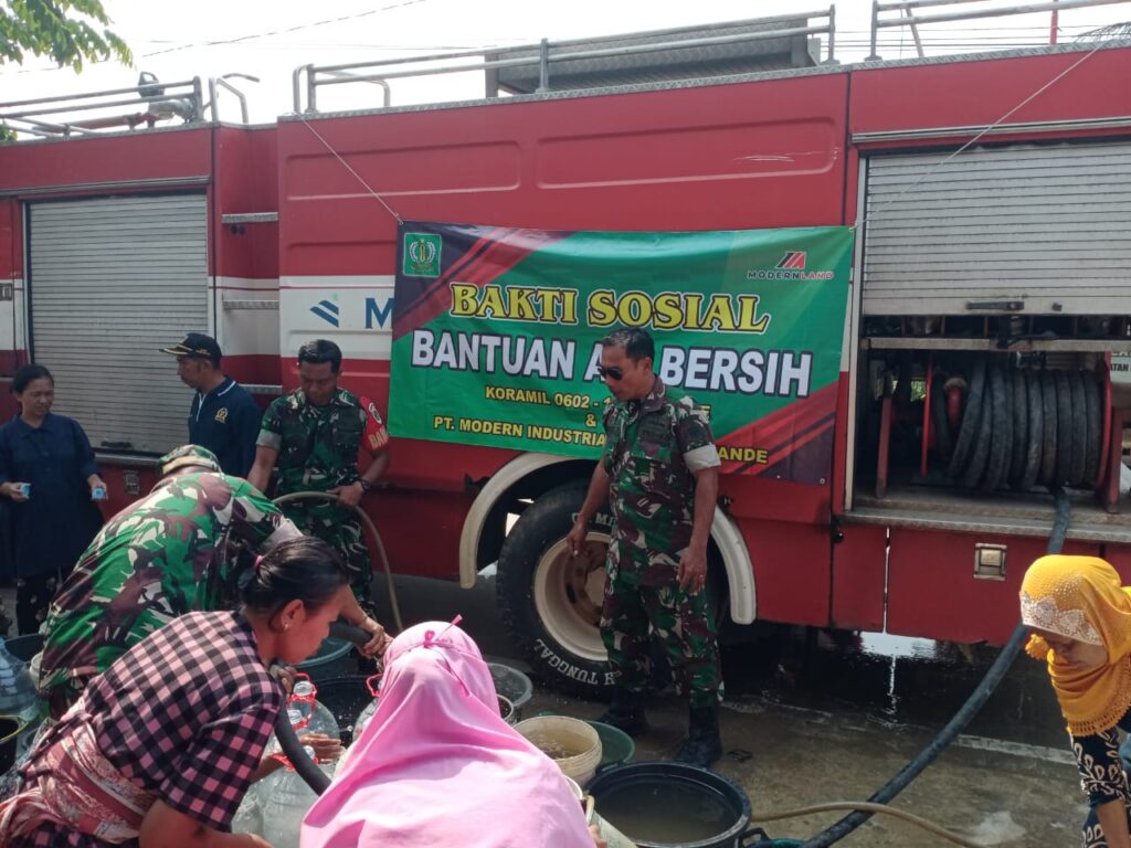 Akibat kemarau pannjang beberapa bulan ini menyebabkan kekeringan dan kurangnya air bersih di beberapa wilayah, Koramil 0602-19/Cikande telah berkoordinasi dengan PT. Modern Industrial Estate Cikande untuk membantu menyalurkan Air Bersih kepada masyarakat yang berdampak kekeringan salah satunya di Desa Ketos, Kecamatan Kibin, Kabupaten Serang, Provinsi Banten, pada Kamis (21/09/2023).