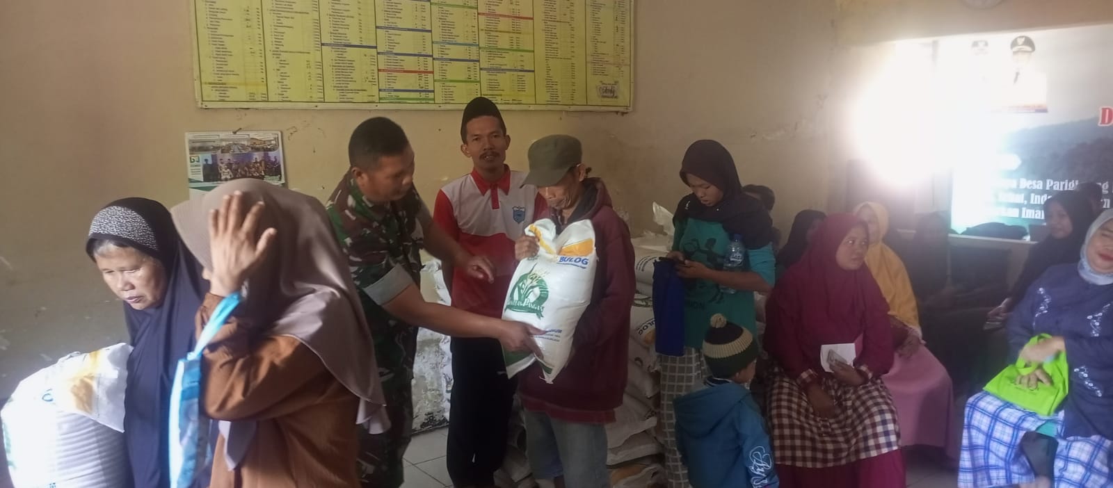 “Hari ini telah disalurkan bantuan beras kepada penerima manfaat sebanyak 219 KK dengan masing-masing memperoleh paket sebanyak 10 Kg Beras,” ucap Babinsa saat pelaksanaan penyaluran beras berlangsung.