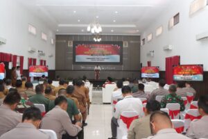 (Forkopimda) Kabupaten Indramayu, Jawa Barat, menggelar Rapat Koordinasi Lintas Sektoral dalam rangka Ops Mantap Brata Lodaya 2023-2024 tentang Kesiapan Pengamanan Pemilu 2024.
