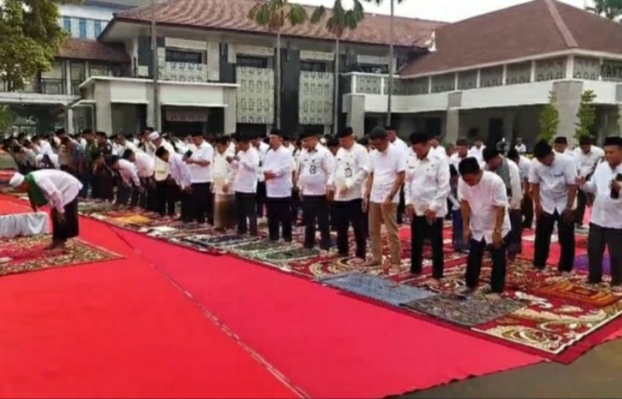 Pegawai Pemkot Cilegon menggelar shalat Istisqa meminta hujan turun. Kemarau panjang menyebabkan hujan sudah beberapa bulan tak turun di wilayah Kota Cilegon.