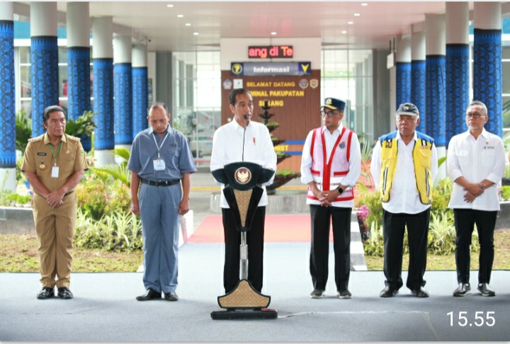 Penjabat (Pj) Gubernur Banten, Al Muktabar dampingi Presiden Republik Indonesia Joko Widodo resmikan Terminal Pakupatan Kota Serang, Senin (8/1/2024). Peresmian ditandai dengan penekanan tombol sirine dan penandatanganan prasasti.